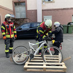 Nach einer kurzen Information über die Aufgaben der Feuerwehr, durften wir alles selbst ausprobieren. Eingeteilt in drei Gruppen durften wir das Feuerwehrhaus besichtigen, mit Schläuchen Feuer löschen und mit dem elektrischen Schneidegerät ein altes Fahrrad zerteilen.